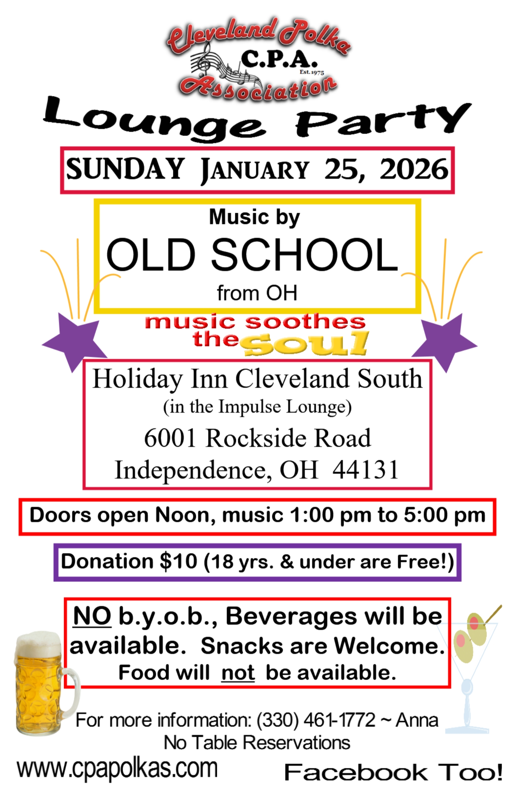 10/25/2026 | Sun | Polka Generations from IL | Home Family Club | 3-7, pm | Anniversary Dance |